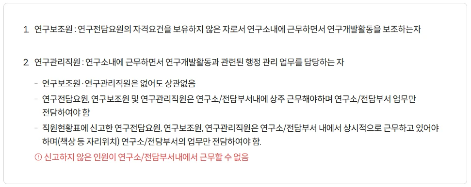 유형에 따라 인적요건의 만족하는 전담연구원의 숫자가 달라지고, 이를 만족해야 한다는 것은 많이들 알 것이다.